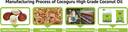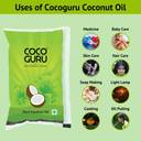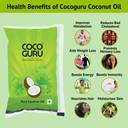 Cocoguru high grade coconut cooking oil is extracted from best quality copra obtained from drying fresh coconuts. Copra is fully dried, roasted and cut into pieces before feeding into expeller for oil extraction. Oil then is thoroughly filtered and packed. Roasting of copra increases the shelf life of oil and gives it a rich aroma and taste still retaining the natural goodness of coconut. Cocoguru coconut oil’s quality reflects in its physical properties, below 0.5 Free fatty acids, Iodine value of around 8.5, Moisture below 0.10%, golden yellow colour and 12 months shelf life. Cocoguru coconut oil is of edible grade and can be used for cooking, hair care, skin care, baby care and oil pulling. Edible Grade, 100% pure, natural, unrefined and filtered suitable for cooking. No artificial flavours, no preservatives, no chemicals, no trans fats, no mineral oils and gluten-free. Grade IA Raw as per Bureau of Indian Standards (BIS) for Coconut Oil (IS:542-1968). Copra is dried and roasted, oil is extracted through the expeller and double filtered through the filter press. Cooking, Deep frying, Salad dressing, food flavouring, Keto diet and raw consumption. Also used for hair care, skincare or body massage, oral care or oil pulling, lighting lamp and soap making. Contains good cholesterol for a healthy heart, Easily digestible medium - chain fatty acids improves metabolism, boosts energy and aids in weight loss. Good anti-bacterial, anti fungal, antiviral properties help in fighting rashes and diseases. Appears golden yellow, viscous liquid, solidifies below 25 degrees. Has aroma and taste of roasted copra. Floats in water with a specific gravity of 0.91. Shelf life of 12 months when stored in a closed container. Stable at high temperatures and doesn't break down. Jerry Can has a handle that enables easy holding of the container. Strong re-usable container preserves the oil for a longer time. Cap is leak proof and tamper proof.