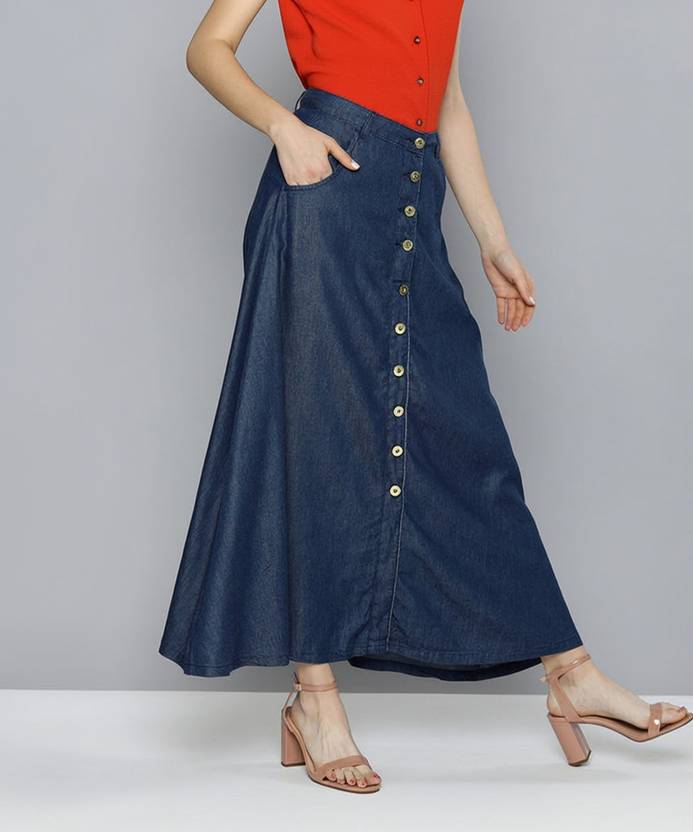 Codaisy Solid Women A-line Blue Skirt