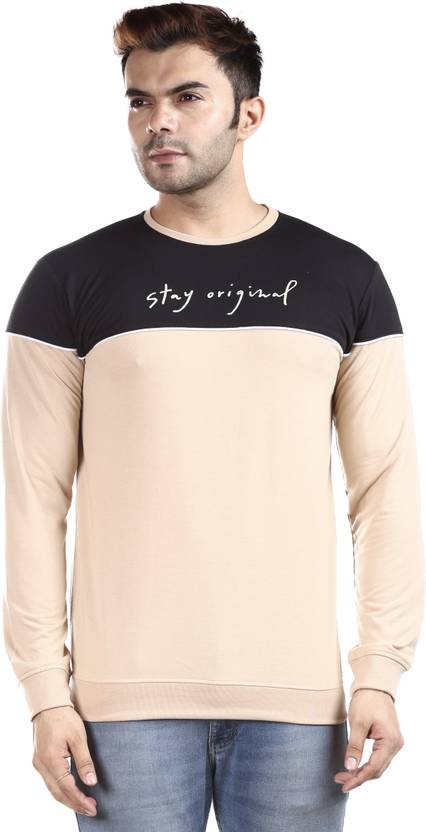 CODE-9 Colorblock Men Round Neck Beige T-Shirt