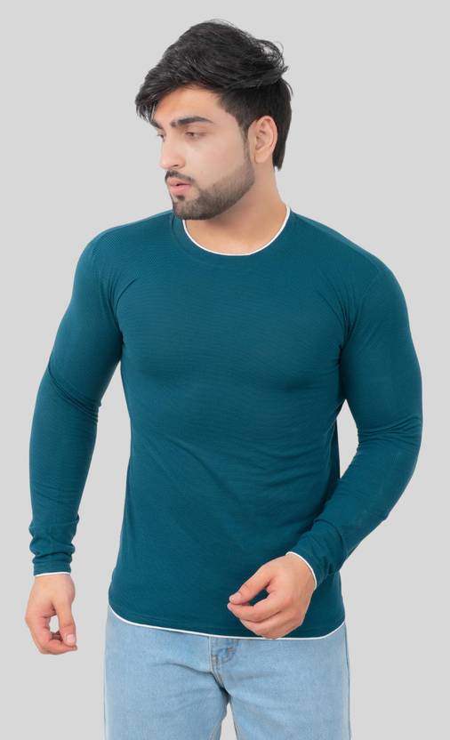 Men Solid Round Neck Polyester Blue T-Shirt