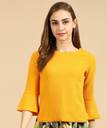 CODE by Lifestyle Casual Bell Sleeve Self Design Women Yellow Top