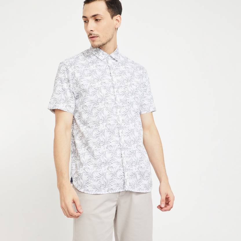 This masterfully tailored full sleeves shirt, defined by an all-over print, features a spread collar and curved hem. The shirt's sleek silhouette can effortlessly elevate your office attire. Couple it with a pair of crisp trousers for a debonair appearance.