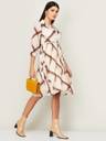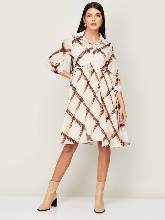 Women A-line Brown, White Knee Length Dress