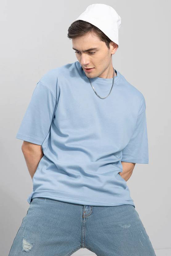 Code yellow Men Solid Round Neck Polycotton Blue T-Shirt