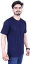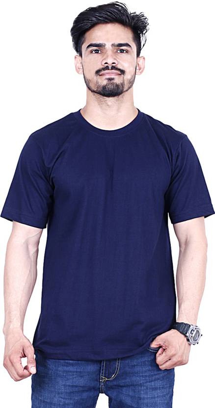 CF-RN-GRY-S Men Solid Round Neck Pure Cotton Dark Blue T-Shirt
