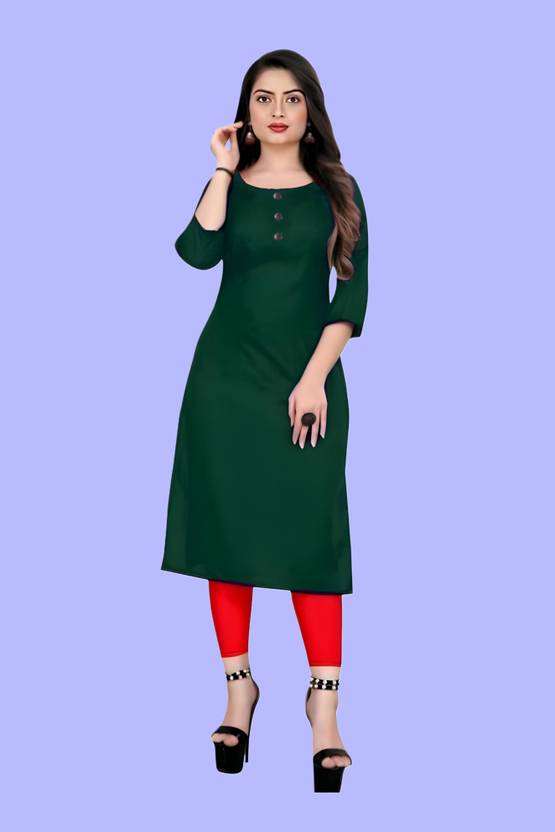 Coft Women Solid Crepe Straight Kurta  (Green)