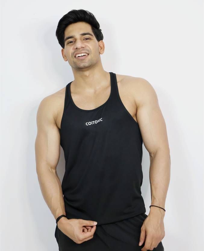Plain Polyester Mens Sleeveless Stringer Slim Fit Sports and Gym Tank Top