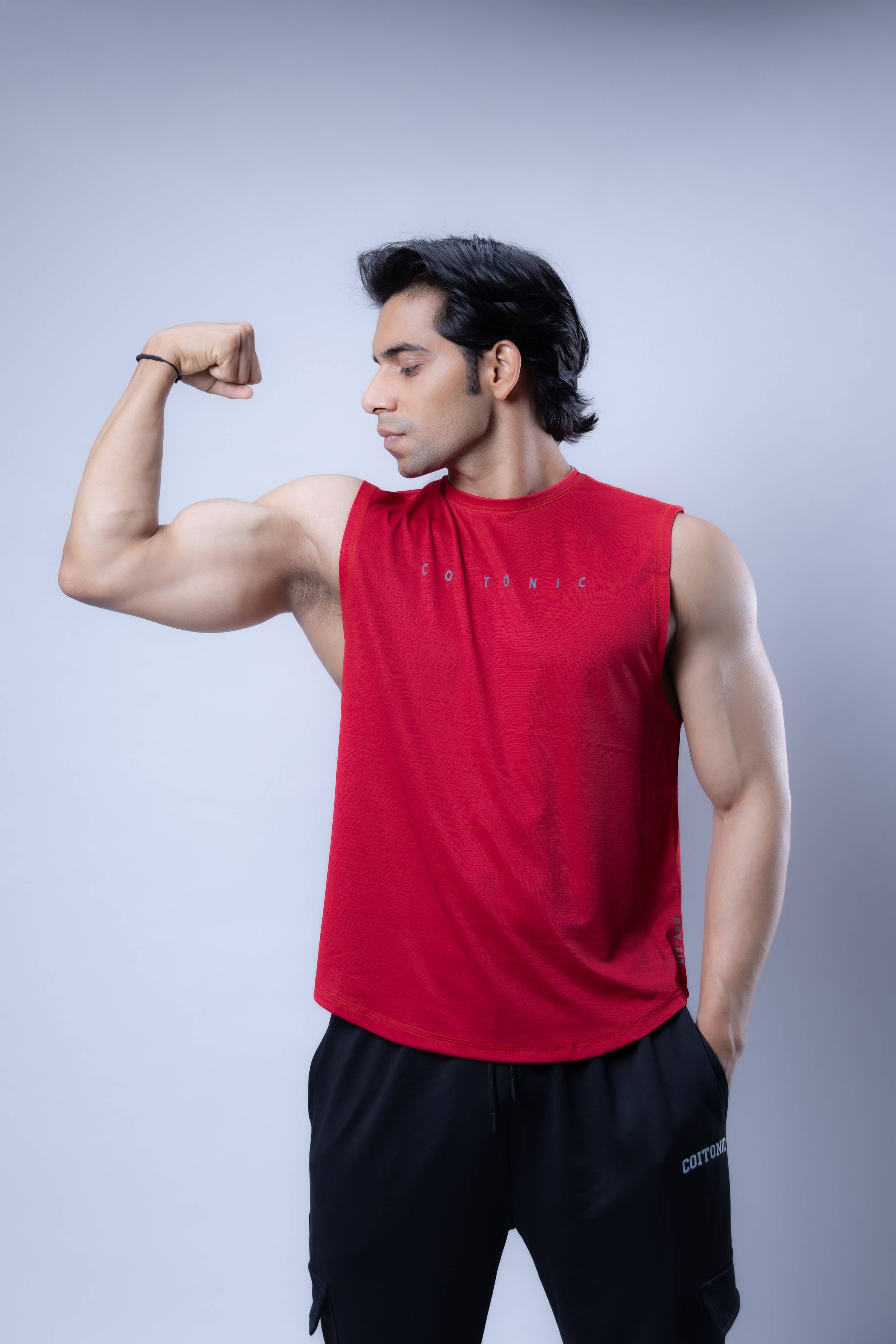 COITONIC Solid Men Round Neck Red T-Shirt