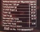 • ENERY(KCAL)-584.59, CARBOHYDRATES(g)-50.48, PROTEIN(G)-7.57, (OF WHICH SUGAR)(g)-37.10, TOTAL FAT (g)- 39.36, SATURATED FATTY ACIDS(g)-19.13, TRANS FATTY ACIDS(g)-0.06