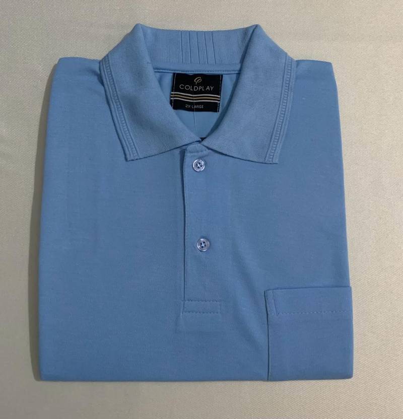 Coldplay Solid Men Polo Neck Blue T-Shirt