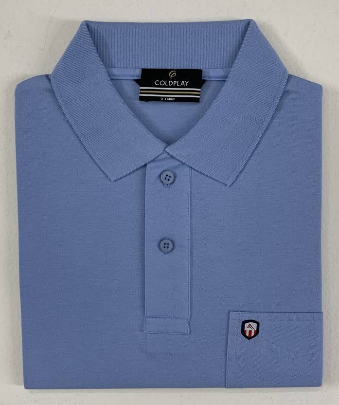 Coldplay Solid Men Polo Neck Blue T-Shirt