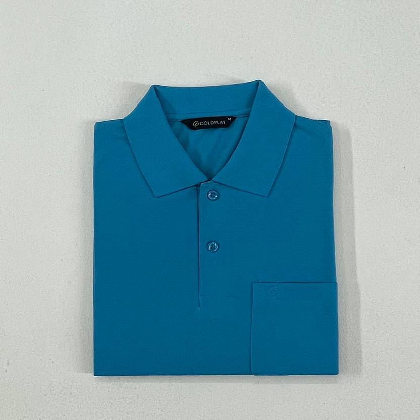 Coldplay Solid Men Polo Neck Blue T-Shirt