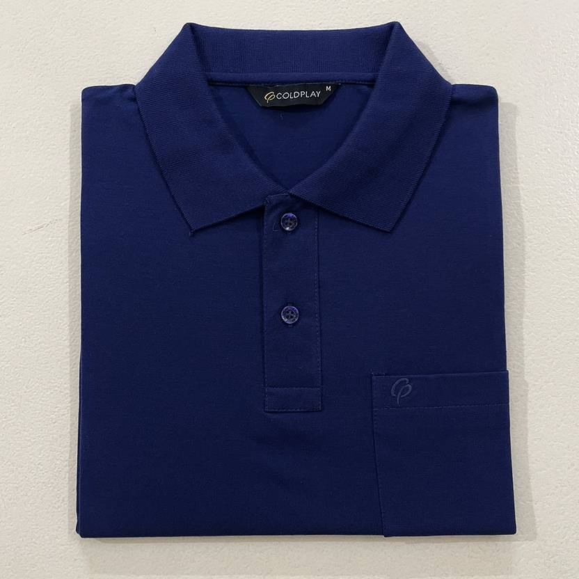 Coldplay Solid Men Polo Neck Blue T-Shirt