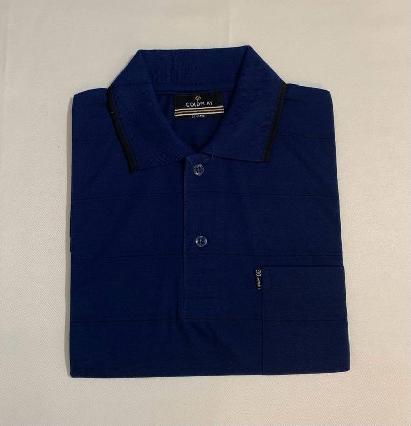 Coldplay Solid Men Polo Neck Blue T-Shirt