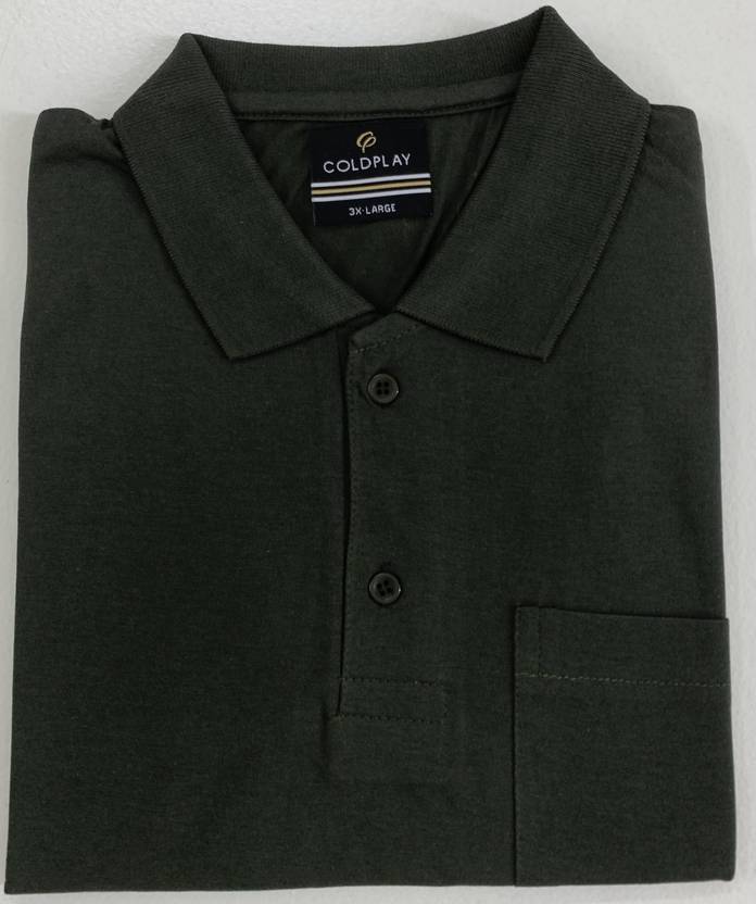 Coldplay Solid Men Polo Neck Green T-Shirt