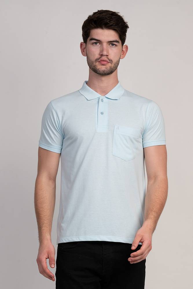 Coldplay Solid Men Polo Neck Light Blue T-Shirt