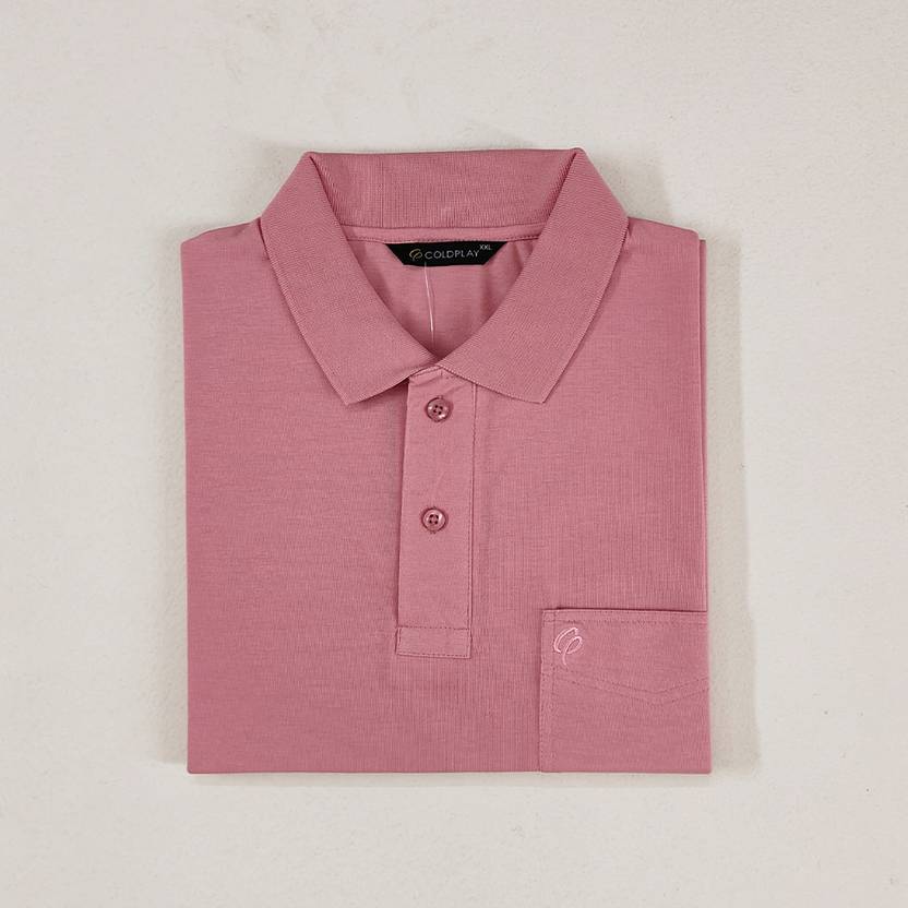 Coldplay Solid Men Polo Neck Pink T-Shirt