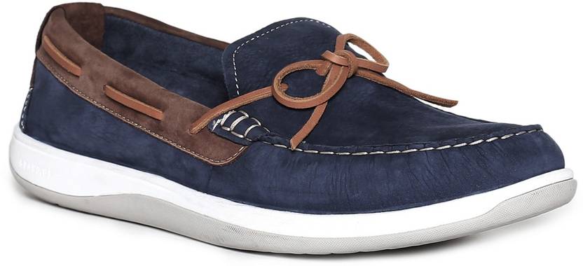 Cole Haan's shoes are crafted from navy suede and feature the classic interlacing that you'll find on every boat style. They have light white rubber soles which are specifically developed to grip on perilous surfaces. Wear yours with cuffed chinos for a relaxed vibe.