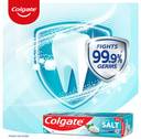 Colgate Active Salt toothpaste fights germs& scrubs them awaywiththe goodness of active salt,known for its antibacterial properties.The Unique formula with salt microcrystals helps elevate dailyoral care with stronger prevention of dental problems. Germs are known to cause different dentalproblems such as cavities, plaque, bad breath, tartar, gum problems, yellowness etc. With ColgateActive Salt, your family can have a worry-free smile as it works to fight these germs for a problem freemouth. It alsohasrefreshing mintyextractsthatgives youa fresherbreath.Colgate Active Salttoothpasteis a daily prevention toothpaste and comeswith multiple benefitslikepreventingcavities,plaque build-up, tartar formation,removesyellow stains, giving you a healthier, whiter smile.Colgatetoothpaste is always 100% vegetarian, gluten-free& Paraben-free.We care about our environment,Colgate India is the nations first to earn TRUE Zero Waste Platinum certification for all its fourmanufacturing sites in India, from Green Business Certification Inc. (GBCI). This toothpaste is made inIndia, with the highest quality standardsand comes with 100% recyclable tube.