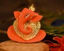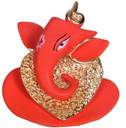 Collectible India 24 K Gold Plated Red Terracotta Ganesha Statue for Car Dashboard God Ganesh Murti Ganpati Idol Figurine with Gift Box Decorative Showpiece - 6 cm (Ceramic, Gold, Red)