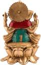Beautiful & Lucky - Sitting On Lotus Large Ganesha Statue. Artistic and Made of Solid Brass. What can be better Home or office decor !! Lord Ganesha represents Joy and happiness which is symbolic to bring Prosperity and Good Luck. Look at his round tubby and snake around it which represents son of Lord Shiva. This beautiful statue is of brass material with fine carving of Genuine Turquoise and some other precious stone. Don't miss looking at all detailed hand carving around the ganesha sculpture. A relaxed & Jolly position of Ganesha. In his upper right hand Ganesha holds a goad, which helps him propel mankind forward on the eternal path and remove obstacles from the way. The noose in Ganesha's left hand is a gentle implement to capture all difficulties. The broken tusk that Ganesha holds like a pen in his lower right hand is a symbol of sacrifice, which he broke for writing the Mahabharata. The rosary in his other hand suggests that the pursuit of knowledge should be continuous. The laddoo (sweet) he holds in his trunk indicates that one must discover the sweetness of the Atman. He is the Lord of success and destroyer of evils and obstacles. He is also worshiped as the god of education, knowledge, wisdom and wealth. In fact, Ganesha is one of the five prime Hindu deities (Brahma, Vishnu, Shiva and Durga being the other four) whose idolatry is glorified as the panchayatana puja. Size: 10" Inches Height X 6 Inches Length, 4 KG Heavy Weight.