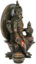 Lakshmi : Hindu Goddess of wealth , fortune , love and beauty : Lakshmi or Mahalaxmi ( Mahalakshmi ) is the Hindu Goddess of wealth, fortune, love and beauty, the lotus flower and fertility. Representations of Lakshmi (or Shri) are found in Jain and Buddhist monuments, in addition to Hindu temples. Generally thought of as the personification of material fortune and prosperity, she is somewhat analogous to the Greco-Roman Aphrodite or Venus, as she also represents eroticism and is similarly thought to have originally "borne of the sea" in her most famous myth, as did those love goddesses. Various Avatar of Lakshmi - Consort on Vishnu : She is the consort of Vishnu and married his incarnations Rama (in her incarnation as Sita), Krishna (as Rukmini) and Venkateshwara (as Alamelu). In addition to Rukmini, however, she was also thought to have incarnated as the milkmaid Radha, Krishna's youthful lover prior to his marriage to Rukmini. In Vaishnava traditions, She is believed to be the Mother Goddess and the Shakti of Narayan. Material : fiber , Bronze Finish Size : 8 inches Height x 5 inches wide Weight : 1 Kg