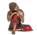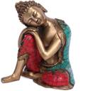 Collectible India Thinking & resting Turquoise Brass Buddha Statue - Inlay Handwork Large Buddhist idol Decorative Showpiece - 25 cm (Brass, Multicolor)