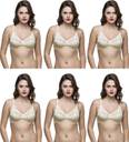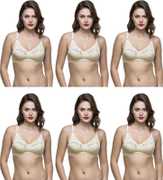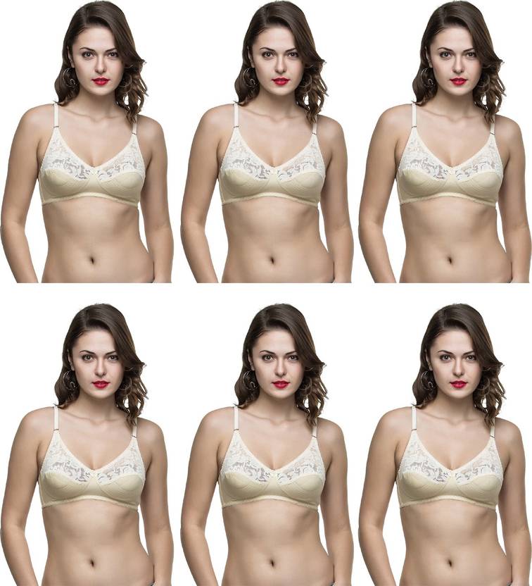 College Girl Cotton Skin Non-Wired Non-Padded Full Coverage Designer Half Net Bra - Pack of 6 (#1521). Uplift your mood on the go with these beige and white bralette bras by college girl that promises to get you high on style and glam quotient. Lending you a sensuous and sexy look, these wirefree hosiery and net bra is stretchable and comfortable to wear all day long. Provide ample lift and support to your bust with this innerwear. It can be worn under any outfit. It will surely be a great add to your collection, which offers great comfort, stretchability and support..
