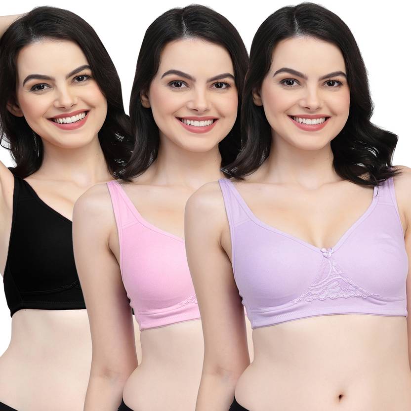 COLLEGE GIRL CG1214 Double Layered Women T-Shirt Non Padded Bra (Purple, Pink, Black)