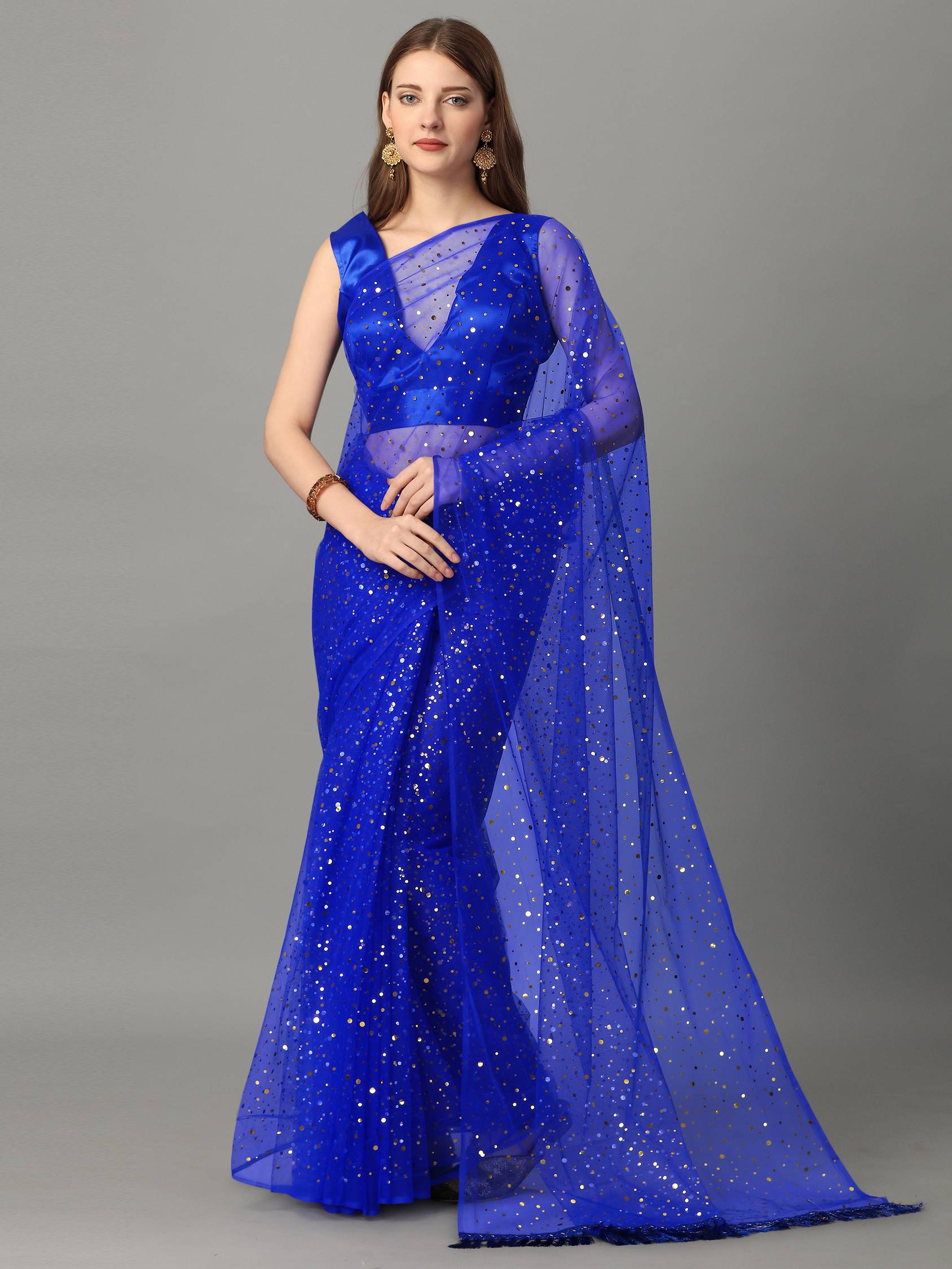 color bucket Polka Print Bollywood Net Saree (Blue)