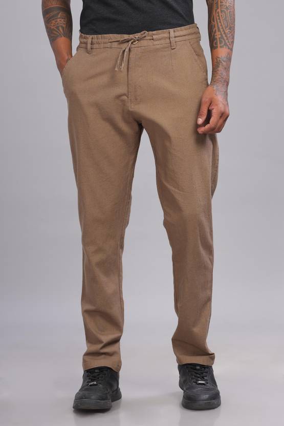 Color Hunt Men Loose Fit Brown Pure Linen Trousers