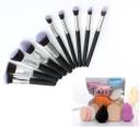 COLOR NEXT 10 Piece Premium Makeup Brushes Set , Black + 6 Piece Makeup Sponges (16 Items in the set)