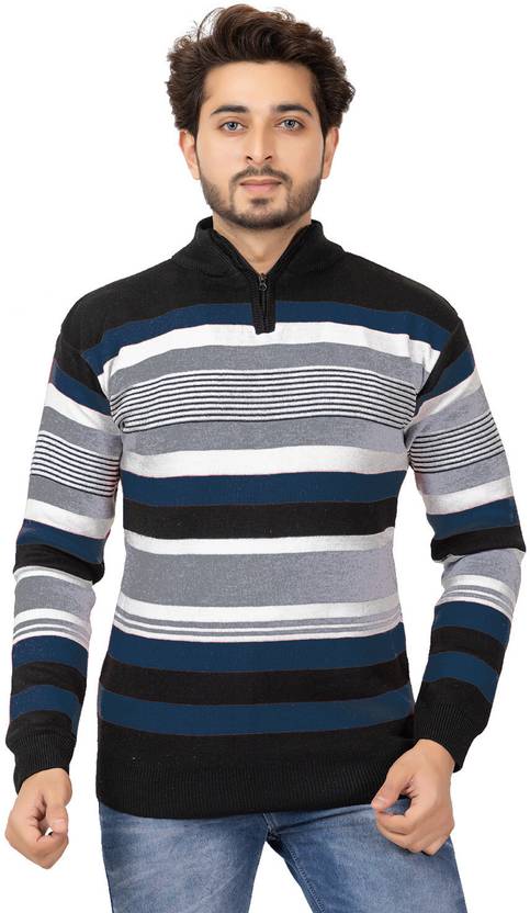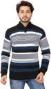 COLORCHAKRA Striped Collared Neck Casual Men Blue Sweater