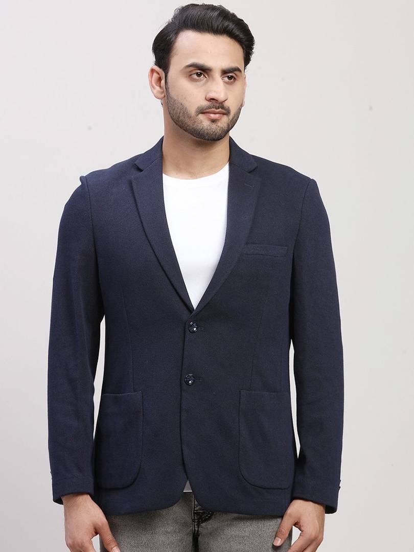 COLORPLUS Solid Single Breasted Casual Men Blazer (Dark Blue)