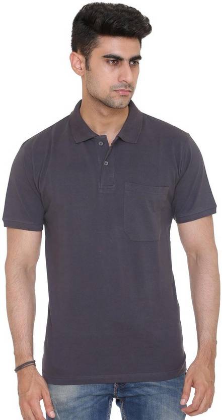 Colors & Blends Men Solid Polo Neck Reversible Cotton Blend Grey T-Shirt