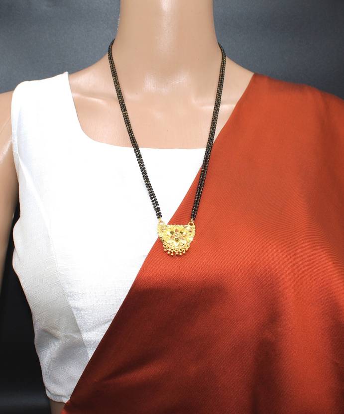 COLOUR OUR DREAMS TraditionaL One Gram Gold Plated 30 Inch Long Black Beads Golden Mangalsutra Alloy Tanmaniya