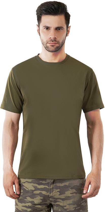 CombatFit Men Solid Round Neck Pure Cotton Dark Green T-Shirt