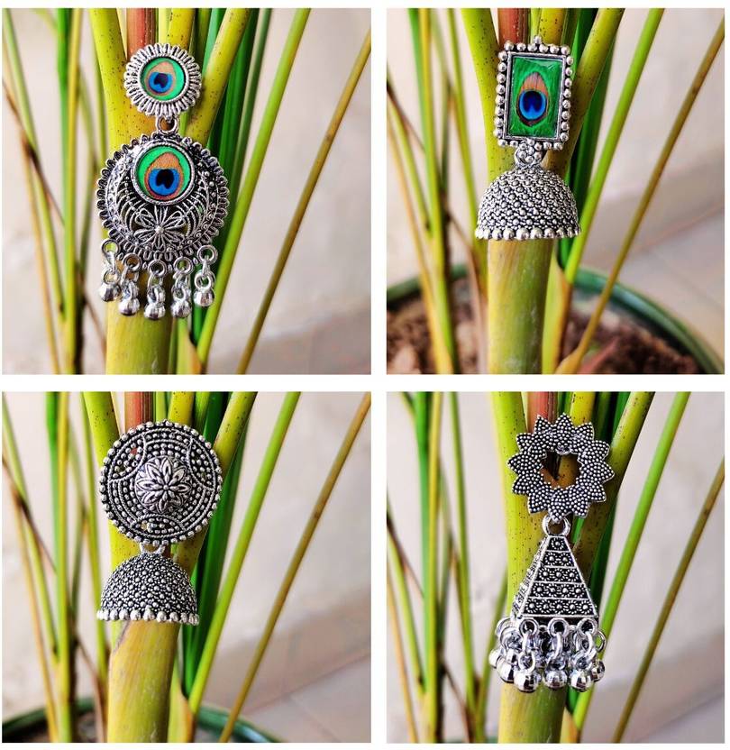 Introducing our stylish Combo of 4 Pair Latest Oxidized Earring Jhumka Set, curated to add a touch of sophistication and charm to your wardrobe. Each pair of earrings in this set is meticulously crafted with the latest trends in mind, ensuring you stay fashion-forward on any occasion.