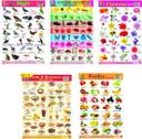 Combo of 5 Learning Charts Birds | Color & Shapes | Flowers | Food & Beverages | Fruits Fine Art Print (28 inch X 19 inch)