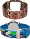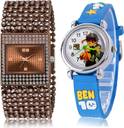 Dial Colour : Brown And White ; Band Colour : Brown And Blue ; Case Shape : Rectangle And Round ; Band Material : Metal And Plastic ; Case Diameter : 30 And 29 mm ; TIMOXIDE Modish Collegian Chain Bracelet Diamond And Ben 10 Kids Brown And Blue Colour Analog Metal And Plastic Belt 2 Watch Combo For Women And Girls - GL289-GC101#