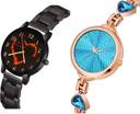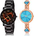 Dial Colour : Black And Blue ; Band Colour : Black And Rose Gold ; Case Shape : Round ; Band Material : Metal And Stainless Steel ; Case Diameter : 32 And 31 mm ; NEUTRON Latest Style Heart Love Valentine Chain And Bangle Chain Black And Rose Gold Colour Analog Metal And Stainless Steel Belt 2 Watch Combo For Women And Girls - GCPL7-GL281