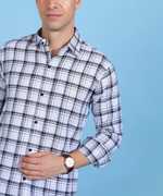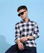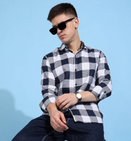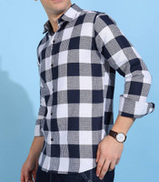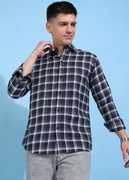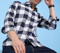 COMBRAIDED Men Checkered Casual Blue Shirt