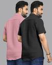COMBRAIDED Men Self Design Casual Black, Pink Shirt (Pack of 2)