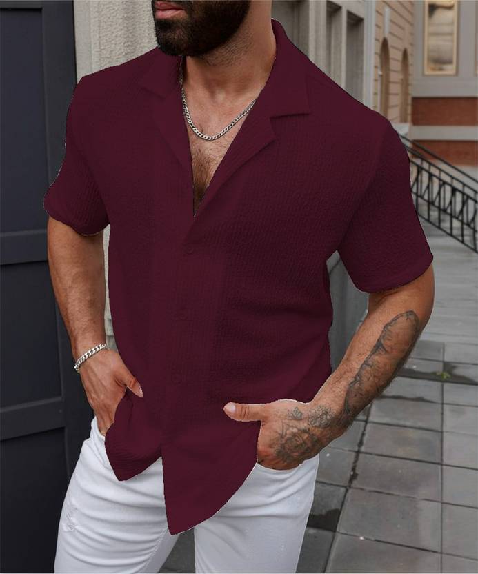 COMBRAIDED Men Self Design Casual Maroon Shirt