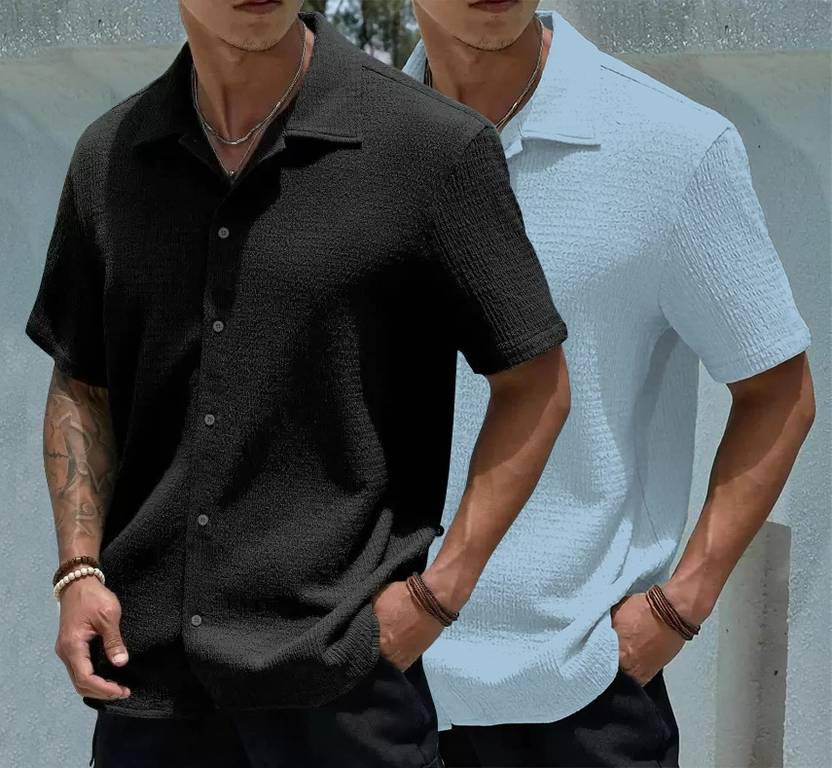 A men's popcorn shirt is a uniquely textured garment that resembles popped corn kernels. These shirts are typically lightweight and stretchy, with a crinkled or wrinkled appearance. They often feature a relaxed fit and come in a variety of colors and styles. The fabric is usually made from materials like polyester or a blend of synthetic fibers, giving it a soft and comfortable feel.
