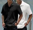 A men's popcorn shirt is a uniquely textured garment that resembles popped corn kernels. These shirts are typically lightweight and stretchy, with a crinkled or wrinkled appearance. They often feature a relaxed fit and come in a variety of colors and styles. The fabric is usually made from materials like polyester or a blend of synthetic fibers, giving it a soft and comfortable feel.