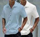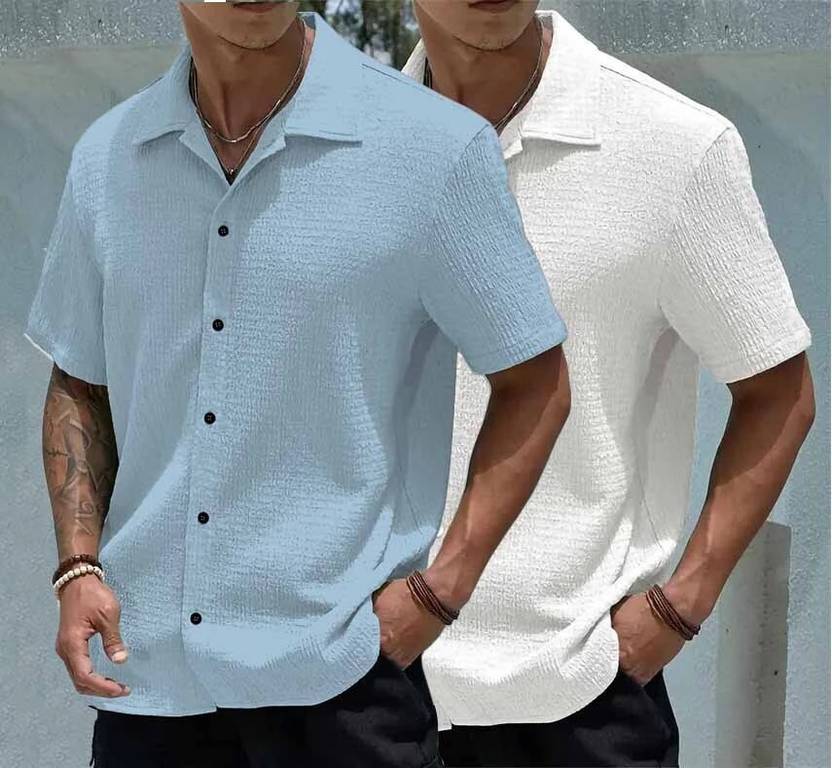 A men's popcorn shirt is a uniquely textured garment that resembles popped corn kernels. These shirts are typically lightweight and stretchy, with a crinkled or wrinkled appearance. They often feature a relaxed fit and come in a variety of colors and styles. The fabric is usually made from materials like polyester or a blend of synthetic fibers, giving it a soft and comfortable feel. Popcorn shirts are popular for their casual and easy-going look, perfect for lounging or adding a fun touch to everyday outfits.