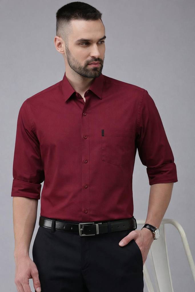 Elevate your formal and smart-casual wardrobe with this solid maroon shirt, tailored for a sharp and confident look. Designed with a structured silhouette and full sleeves, this shirt offers all-day comfort while maintaining a polished appearance. Ideal for office wear, evening outings, and formal occasions.
