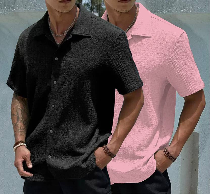 A men's popcorn shirt is a uniquely textured garment that resembles popped corn kernels. These shirts are typically lightweight and stretchy, with a crinkled or wrinkled appearance. They often feature a relaxed fit and come in a variety of colors and styles. The fabric is usually made from materials like polyester or a blend of synthetic fibers, giving it a soft and comfortable feel. Popcorn shirts are popular for their casual and easy-going look, perfect for lounging or adding a fun touch to everyday outfits.