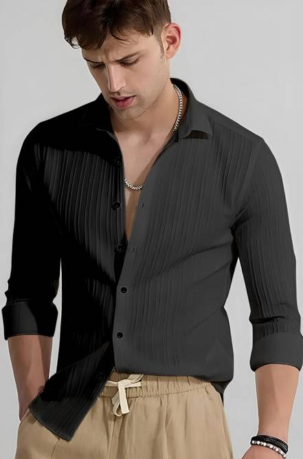 VARNIFABSTORE Men Self Design Casual Black Shirt